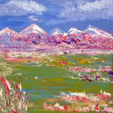 "I’m fascinated by the ever-changing moods of the natural world--the color of uranium mountains at sunset, purple snow shadows on a cactus field, or the sky’s electric intensity before a thunderstorm. I’m also interested in the moods, or states of mind evoked by being in nature, and enjoy the challenge of expressing these emotions in color and form.