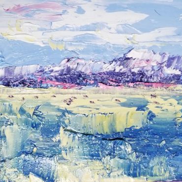 Kim's work is about space, whether it's the vast expanse of a desert landscape or the quality of mind that accommodates all that arises within it. She tries to capture the ineffable atmosphere of the beautiful San Luis Valley and Sangre de Cristos mountain range.