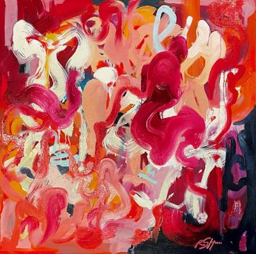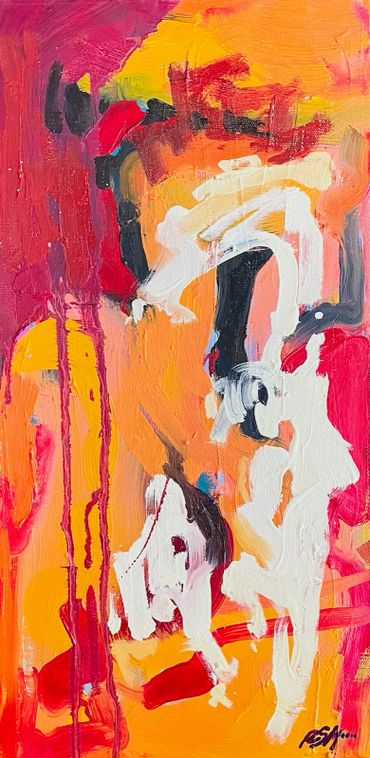 Rachel now pursues a joyful abstraction to fill space with texture and color. She is very inspired by the modern artists Sherie Franssen, Edwige Fouvry, Tom Lieber, and Yayoi Kusama.